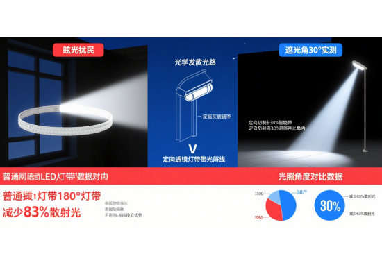 定向透鏡遮光角30°能夠有效地將LED燈帶的光線控制在一個較小的范圍內(nèi),減少了光線的散射和溢出。與普通LED燈帶相比,其在周圍環(huán)境中的光照強度明顯降低,從而有效避免了對周圍居民的干擾。