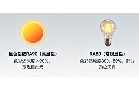 在家居照明設(shè)計中,LED燈帶憑借其柔和的光線和靈活的安裝方式,成為營造氛圍的重要元素。然而,面對市場上標(biāo)注著不同顯色指數(shù)的產(chǎn)品,許多消費者往往陷入選擇困境。本文將通過顯指RA90與RA80LED燈帶的實物對比,從光學(xué)特性、空間氛圍營造、實際應(yīng)用場景等維度,揭示兩者在家居環(huán)境中的真實差異,為讀者提供專業(yè)的選購參考。