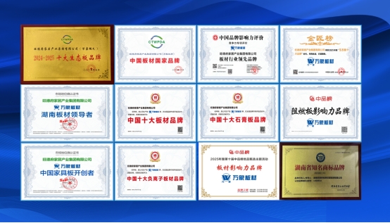 萬象品牌的成長史,就是一部永不停歇的創(chuàng)新史。在周曉輝董事長的指引下,始終以敏銳的洞察力把握行業(yè)脈搏,以強(qiáng)大的研發(fā)力推動(dòng)產(chǎn)品迭代升級(jí)。從環(huán)保等級(jí)的不斷提升,到花色工藝的持續(xù)精進(jìn);再到應(yīng)用領(lǐng)域的廣泛拓展,萬象人用智慧與汗水,將“創(chuàng)新”二字深深鐫刻在品牌基因之中。正是這份堅(jiān)持,讓我們?cè)跁r(shí)代的浪潮中勇立潮頭,攬獲了行業(yè)內(nèi)外無數(shù)的榮譽(yù)與嘉獎(jiǎng)?!爸袊宀膰移放啤?、“中國家具板開創(chuàng)者”、“湖南板材領(lǐng)導(dǎo)者”,承接省內(nèi)多家企事業(yè)單位重大改造項(xiàng)目,以高瞻遠(yuǎn)矚的戰(zhàn)略布局錨定未來方向,以硬核實(shí)力,在行業(yè)版圖上書寫屬于它的不朽傳奇!