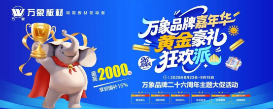 廿六載風(fēng)雨同行,感恩每一份不離不棄的信賴!為回饋消費(fèi)者始終如一的關(guān)注與厚愛,萬象品牌26周年慶特別打造“萬象品牌嘉年華?黃金豪禮狂歡派”主題大促——8月23日至9月15日,活動(dòng)火熱啟幕!誠邀您親臨線下門店,解鎖26周年專屬優(yōu)惠與驚喜福利,在這場(chǎng)周年狂歡里,共赴品質(zhì)之約,收獲滿滿誠意。