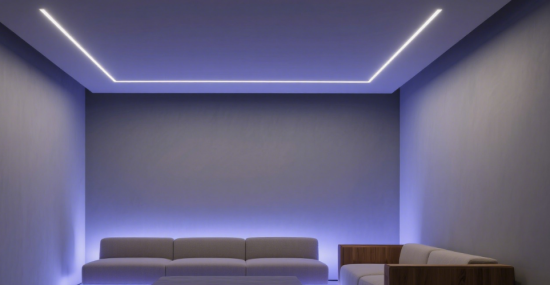 間接照明是指通過反射或折射的方式將光線投射到空間中,避免直接光線的刺眼感。在小戶型中,間接照明可以使光線更加柔和均勻,同時(shí)還能營(yíng)造出寬敞明亮的視覺效果。例如,在天花板四周安裝暗藏?zé)魩?,光線向上反射,使天花板看起來更高;在電視柜下方安裝隱藏式射燈,照亮地面,讓空間顯得更加開闊。