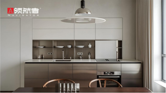 北歐風(fēng)的“極簡”藏在領(lǐng)航者廚房定制柜的功能里,廚房一體化柜體外側(cè)平整,內(nèi)里卻藏“收納魔法”——封閉柜可存放換季或不常用的廚房雜物,讓空間遠(yuǎn)離雜亂;開放格用來放置常用餐具,拿取格外順手;高柜的設(shè)計(jì)則方便取用深處物品,每一處空間都能被高效利用,真正做到功能“藏而不露”,令廚房既有著簡約大氣的視覺效果,又能充分滿足實(shí)用的收納與操作需求。