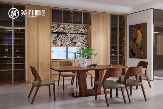 ·融匯設(shè)計(jì),詮釋現(xiàn)代東方美學(xué):在設(shè)計(jì)上,美升娜將東方意境巧妙融入現(xiàn)代生活。無論是餐桌邊緣點(diǎn)綴的云紋浮雕,還是柜體采用的隱形拉手設(shè)計(jì),都在簡(jiǎn)約造型中蘊(yùn)含深遠(yuǎn)意境,實(shí)現(xiàn)了傳統(tǒng)與現(xiàn)代的和諧共生,讓團(tuán)圓的空間更顯純凈與完整。