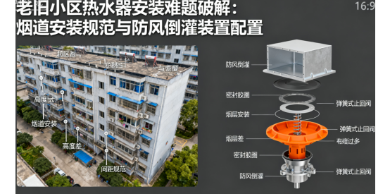 老舊小區(qū)熱水器安裝難題破解:煙道安裝規(guī)范與防風(fēng)倒灌裝置配置