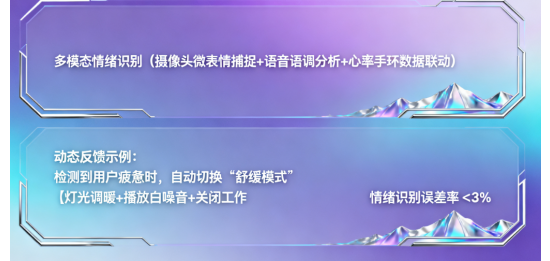 比理解指令更進(jìn)階的,是AI對(duì)用戶情緒的主動(dòng)感知與響應(yīng)。這背后涉及“生理環(huán)境行為”多維度數(shù)據(jù)的協(xié)同分析。