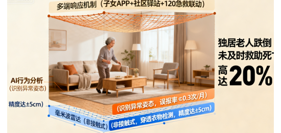 在蘇州某社區(qū)的適老化改造試點中,82歲的王爺爺體驗跌倒監(jiān)測系統(tǒng)半年后,子女在電話中感慨:“以前夜里總睡不踏實,現(xiàn)在手機收到‘老人已安穩(wěn)入睡’的提示,終于能睡個整覺了。”這或許正是科技向善的本質(zhì)——用看不見的守護,還原最溫暖的陪伴。